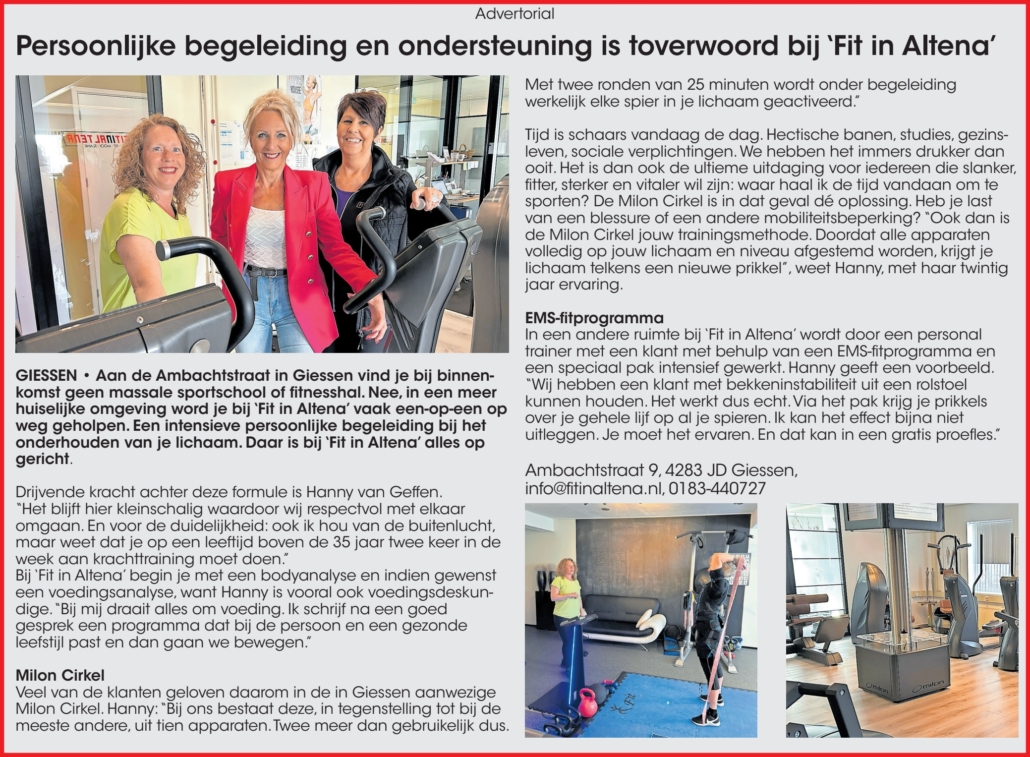 Onder intensieve persoonlijke begeleiding naar de gestelde doelen toewerken. Dat is waarvoor u bij ons terecht kunt. Welkom bij Fit in Altena in Giessen.