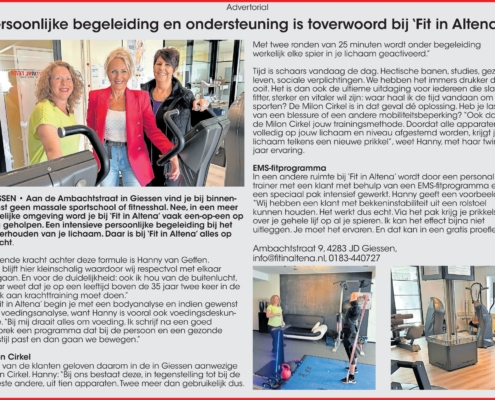 Onder intensieve persoonlijke begeleiding naar de gestelde doelen toewerken. Dat is waarvoor u bij ons terecht kunt. Welkom bij Fit in Altena in Giessen.